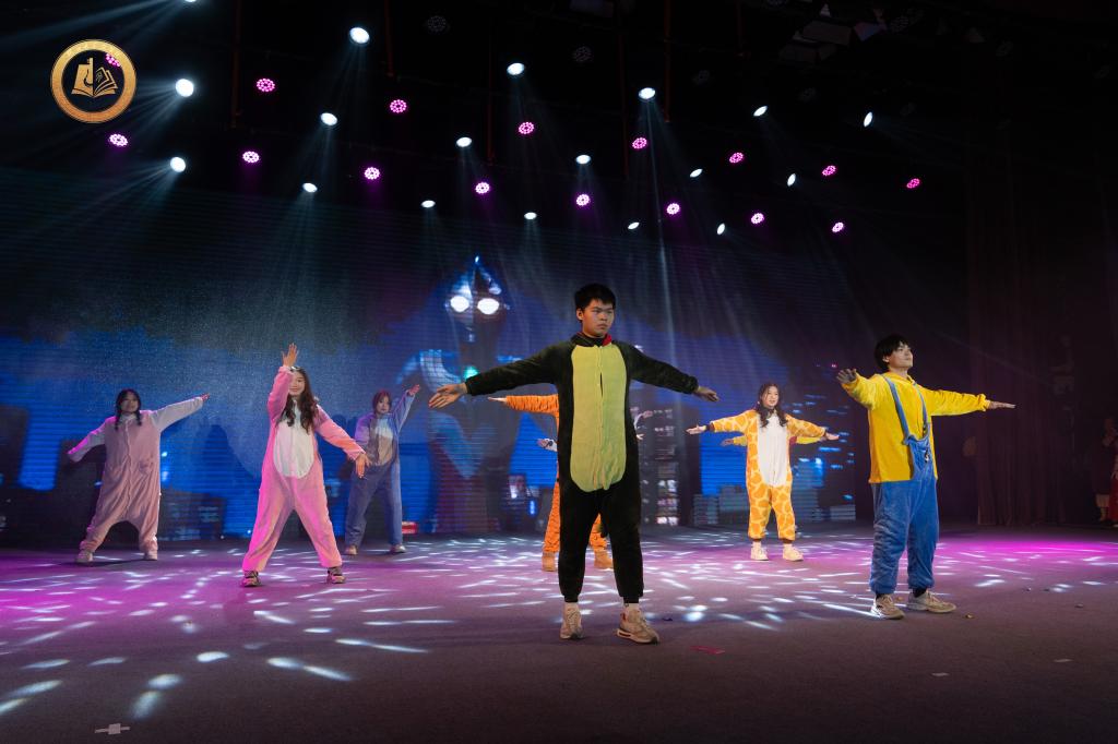 新春新景开新宴,新年新梦谱新篇。晚会以武术《华彩东方》拉开序幕,共分“正是江城好风景 时盛岁新又逢君”“同学少年风华茂笑语欢歌破浪行”“长风万里绘山河 弘文前程皆胜景”三个篇章。踏歌而行,起舞翩跹,节目《Batter Up》《见家长》《Diamond》《内卷不绝》《想去海边》《开心往前飞》《木兰归》《元日梦华游》《蛾儿雪柳》等好戏连台,将晚会氛围推至高潮。