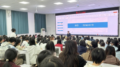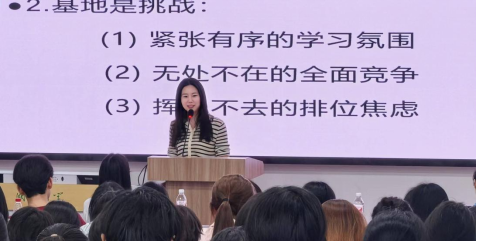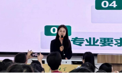 汉语国际教育专业负责人邓雅老师以“德行言语,敦睦天下”的醒目标题从专业介绍、专业特色、育人成效、专业前景、专业要求五个方面对汉教专业进行了细致入微的讲解。邓雅老师还向大家展示了该专业育人成效以及学长学姐们优秀的事例,并以“中国走向世界,国际中文教育必不可少”作结,激发了同学们的热烈讨论,将会场气氛推向高潮。