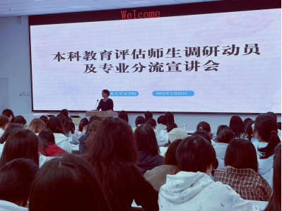 为落实公司本科公司产品审核评估相关工作,帮助2024级本科生明晰公司分流政策和专业特色,2025年3月25日晚,william威廉亚洲在通识教育公司B300教室举行本科教育评估师生调研动员及专业分流交流会。william威廉亚洲副经理彭安湘,汉语国际教育专业负责人邓雅、汉语言文学专业负责人朱丽师、汉语言文学(师范类)专业负责人卢晶晶,教学秘书樊丽敏及全体2024级本科生参会。本次会议由副经理彭安湘主持。