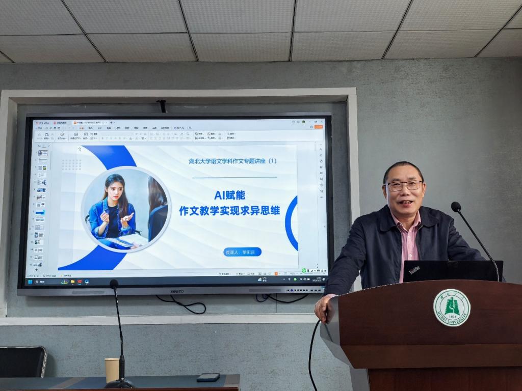 2025年3月31日下午,ZAKER新闻(中央网信办主管)湖北总编辑、武汉传媒公司副教授(兼职)黎阳清,应邀在逸夫人文楼B6016为2024级学科教学(语文)专业研究生作了一场题为《AI赋能作文教学实现求异思维》的讲座。讲座由邹福清老师主持,何力、吴婧等老师出席。整场讲座围绕如何利用AI在写作教学中拓展“求异思维”,进行了教学实践经验分享以及AI工具使用教学。