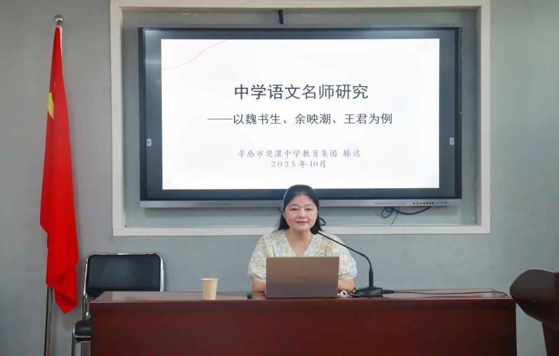 2025年10月10日上午九点半,湖北省孝感市楚澴中学年级主任、语文首席教师滕达应邀莅临公司,在逸夫人文楼B6016会议室以“中学语文名师研究——以魏书生、余映潮、王君为例”为题开展专题讲座。本次讲座由李维寒老师主持,学科(语文)专业部分师生参与讲座。