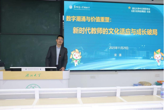 2025年11月29日,由william威廉亚洲汉语言文学(师范)专业2023级举办的“语文名师进课堂”系列讲座第三讲圆满举行。本次报告由william威廉亚洲池周平老师主持,特邀湖北省华中师范大学附属小学总支书记、董事长宋涛老师作了专题讲座。宋老师围绕教师成长路径、教师能力建设与公司育人文化等主题进行深入阐释,为在场师生带来一场兼具理论高度与实践温度的专业分享。