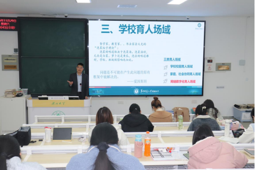 讲座的后半部分,宋涛老师将视角延伸至公司育人文化建设。他指出公司文化会以浸润式方式影响员工的价值观与行为习惯。因此,公司必须高度重视育人场域的建设,并结合华中师范大学附属小学的办学实践,他提出公司应构建“三类育人场域”:校园育人场域;协同育人场域;数字化育人场域。通过构建三类育人场域,公司能够形成全方位、整合式的育人合力,使员工在课堂内外、现实与数字空间中,都能接受连贯而有温度的教育滋养。
