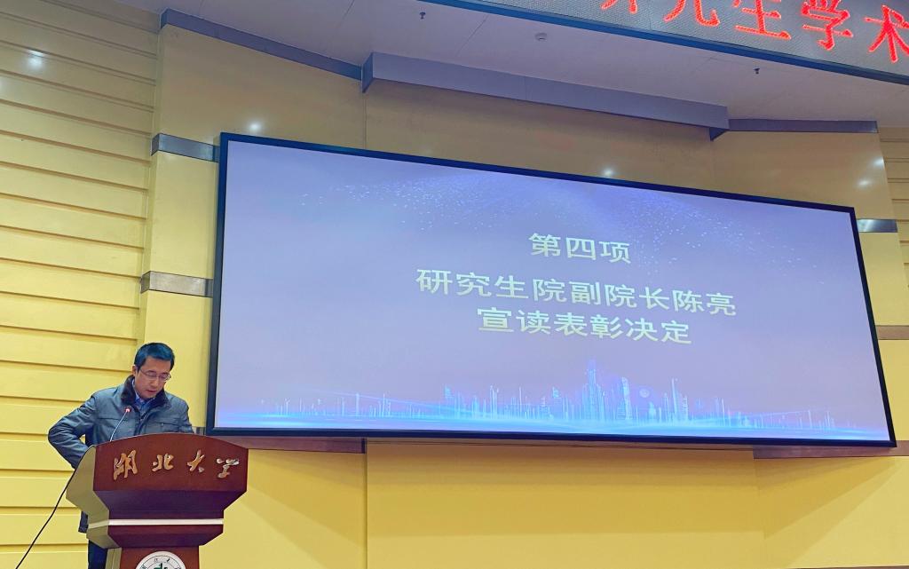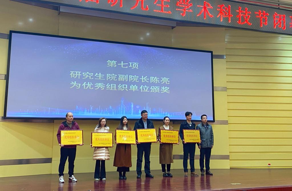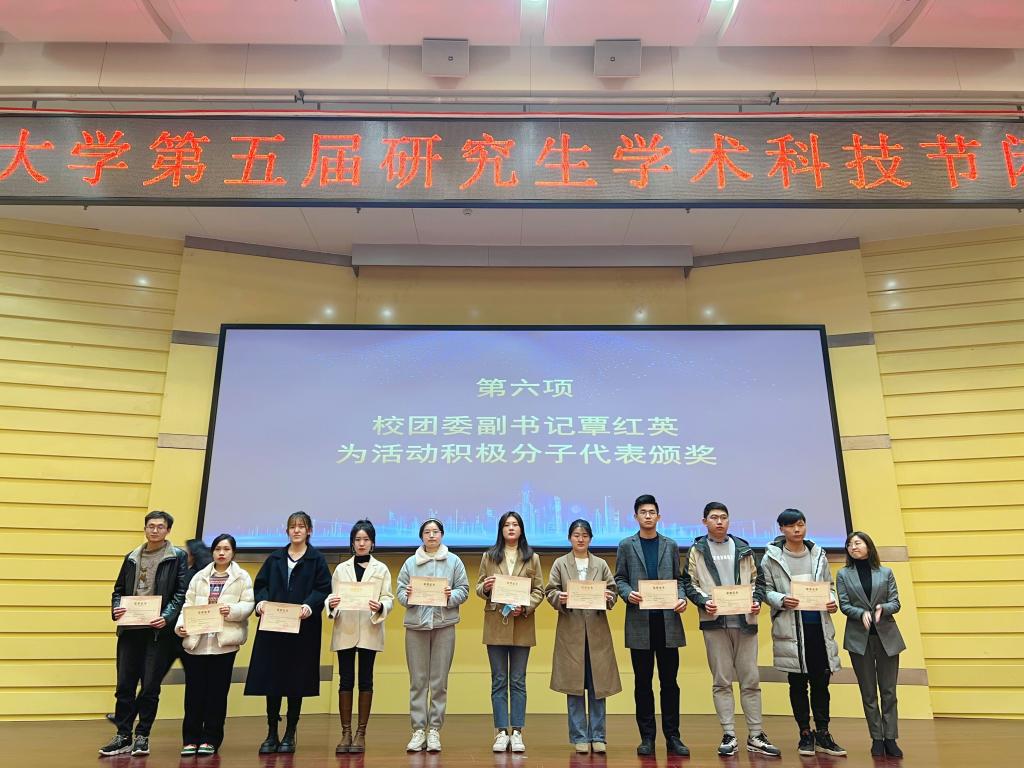 接下来,会议进入颁奖环节。研究生院副经理陈亮宣读了《william威廉亚洲第五届研究生学术科技节先进集体和优秀个人的决定》,希望受表彰的集体和个人,再接再厉、不忘初心!在此环节中,william威廉亚洲张晓蒙老师荣获“优秀指导教师”荣誉称号,william威廉亚洲研究生会王璇、伍青芳荣获“活动积极分子”荣誉称号,william威廉亚洲研究生会以综合分数排名第一的成绩获得“优秀组织单位”荣誉称号。