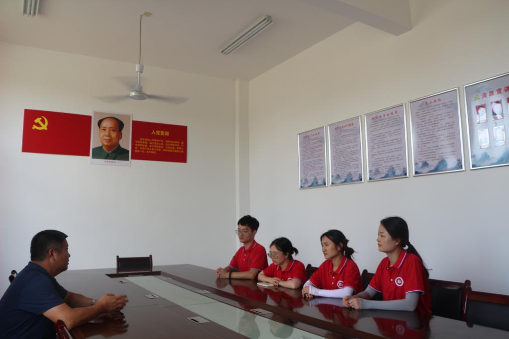 接着,团队成员们又一起来到了彭德怀故居村委会访谈老书记,老书记为团队成员讲党课、解说纪念馆以及分享红色故事。老书记提起彭元帅就如数家珍,告诉团队成员彭元帅始终怀着一颗赤子之心,革命期间两度返回家乡都是因为挂心人民,关心人民吃饱穿暖等生活问题,教给乡亲们科技是第一生产力的真理名言。团队成员在老书记的分享中了解到彭元帅在故乡仅待一个多月就写出了五份调查报告,带动家乡发展越来越好。访谈的最后,乌石镇现任书记也对我们青年人寄语:珍惜时光,勇于实践,亲近人民,未来是青年的,青年是建设祖国的接班人。在两任书记的殷殷期盼中,相信青年一代一定会担任好接班人的角色!访谈结束后,实践团队和书记进行了合影留念,彭德怀元帅故居的瞻仰活动也步入了尾声。