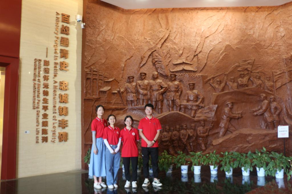 23日上午9点,团队成员们到达彭德怀元帅故居,主要参观了彭德怀纪念馆、彭德怀故居以及铜像广场等地。彭德怀故居位于湖南省湘潭县乌石镇乌石村石峰下,依山而建,与彭德怀铜像遥相呼应。纪念馆采用中国传统庭院式布局,围绕序厅,疏密有致地设立了4大展厅共8个展室。序厅为一个宽敞的八边形,正墙由三组红色高浮雕组成,分别表现的是:血战罗霄、百团大战、抗美援朝。正中一座半身圆雕,塑造了解放战争中的彭德怀。侧面是两幅壁画,主题为“致力于军队革命化、正规化建设”、“和人民群众心连心”。整个序厅以极富感染力的艺术作品,高度浓缩再现了彭德怀史诗般的英雄业绩和伟大的人格魅力。纪念馆陈列分4个部分,共20个章节,用了300多张照片和一大批珍贵艺术展品,采用了声、光、电等多种表现手段,生动、艺术地再现了彭德怀伟大、光辉、战斗的一生。