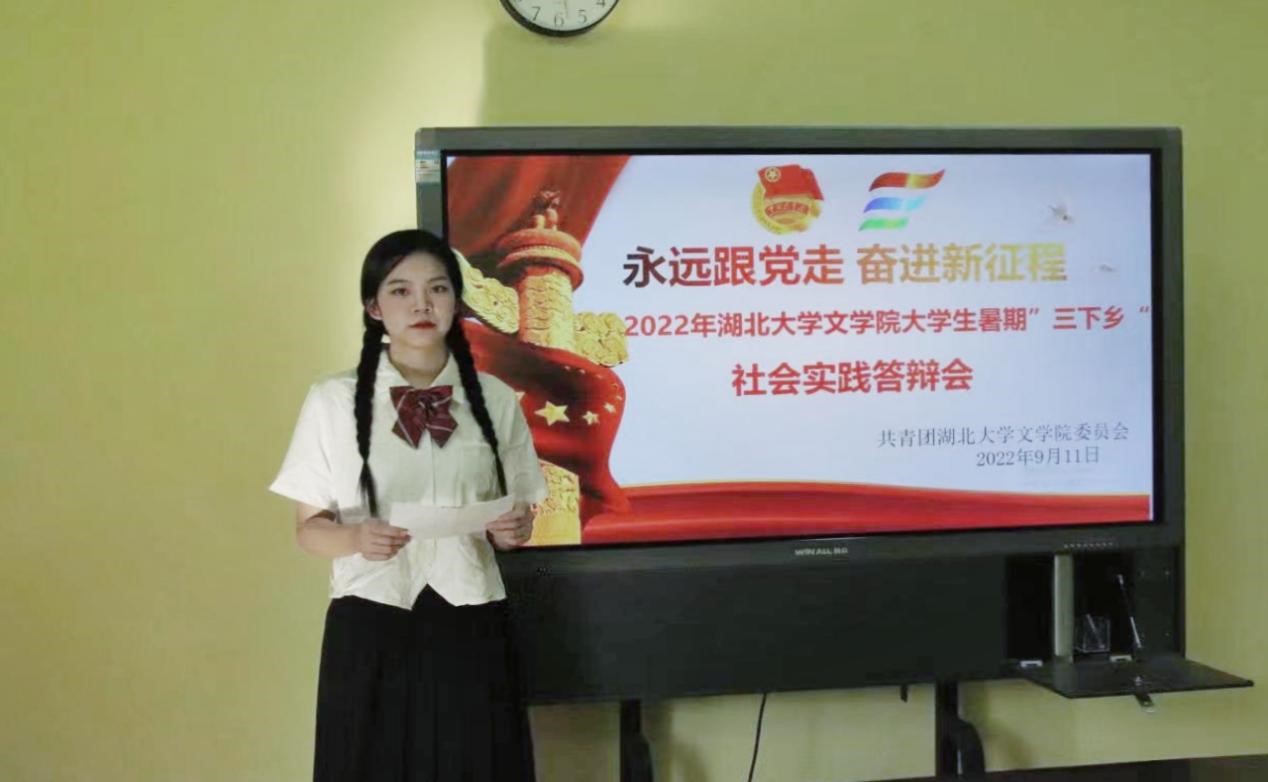 在对此次答辩做了简单的介绍后,各团队分别就前期准备、活动过程、心得收获等方面全方位地进行了汇报。其中,赴利川市箐口村“推普助力乡村振兴”调研团队,以恩施团堡镇永兴小学附属幼儿园的幼儿群体为研究对象,调研了国家通用语言政策在少数民族农村地区幼儿园的落实情况;“春风化‘语’”教育关爱服务调研实践团队走访了荆州市松滋市纸厂河镇的两所乡镇幼儿园,推动乡镇幼儿普通话学普及化的发展;“寻访武汉红色足迹,追随革命青年脚步”团队则围绕武汉多处红色革命景点开展了实地调研活动,纪念革命历史,缅怀革命先烈,学习红色故事,弘扬爱国精神。