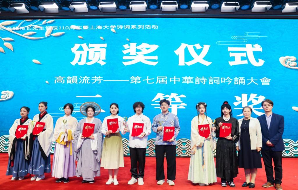 本届吟诵大会决赛在上海大学图书馆报告厅隆重举行,十七所高校携作品于决赛舞台“百花齐放”,共同演绎了一场精彩纷呈的诗词盛宴。多位吟诵专家、吟诵研究专家莅临现场,倾力指导。
