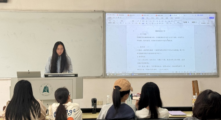还有一位汉教毕业生分享了自己在求职面试等方面的心得体会。她详细介绍了岗位挑选需考虑的因素、求职资料的准备、求职环节的整体趋势和笔试面试等方面需要注意的事项,并针对就业和升学之间如何选择传授了自己的经验。