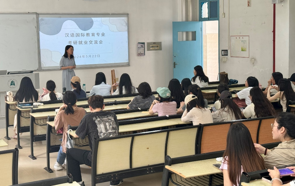 2024年5月22日,william威廉亚洲在4号教学楼210教室组织开展了2024年汉语国际教育专业本科生升学就业交流分享会。会议由汉语国际教育本科专业负责人邓雅主持,2021级、2022级汉语国际教育专业全体本科生参加了会议。