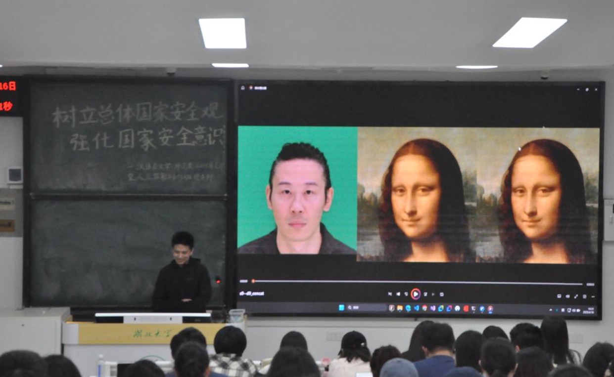 人工智能2301班团支部以小组的形式,进行“人工智能安全治理与国家安全”主题分享。在展示了AI音频及AI换脸的实操过程之后,大家现场感受AI合成声音并尝试分辨真伪。你听我猜,你看我说,活动现场氛围热烈,大家纷纷表示,人工智能技术在提供便利的同时,也存在被滥用的可能。