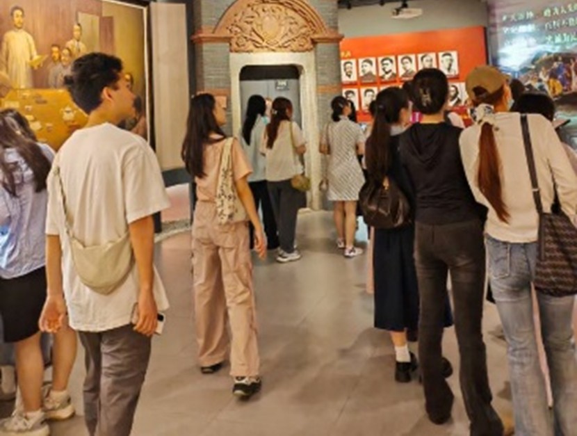 走进中共五大会址纪念馆,厚重的历史气息扑面而来。在讲解员带领下,同学们深入学习了1927年中共五大召开的历史背景、会议内容及深远意义。斑驳的木桌、泛黄的档案、复刻的会场,将大家带回那段危急存亡的革命岁月。
