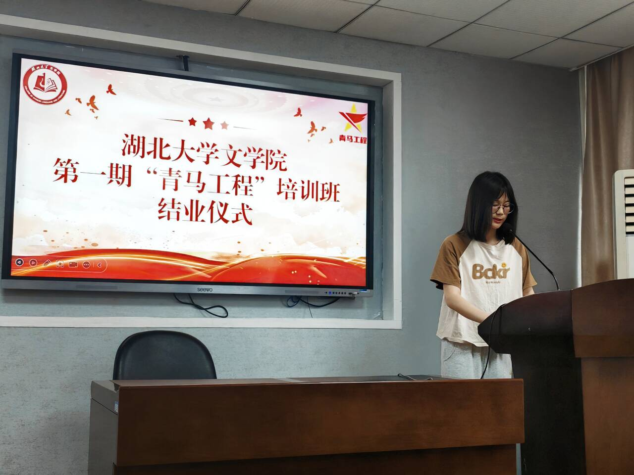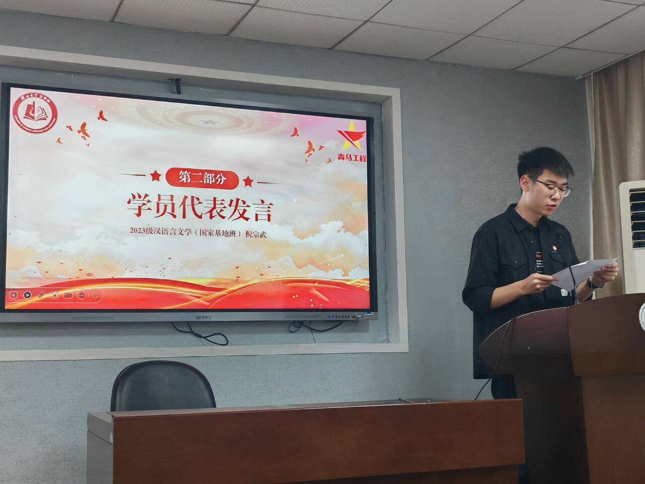 团委书记张子康为优秀学员颁发证书。在致辞中,他向结业学员表示热烈祝贺,并对大家提出三点期待:做有情怀的中文青年、做有理想的湖大青年、做有格局的中国青年,奋力书写为中国式现代化挺膺担当的青年篇章。