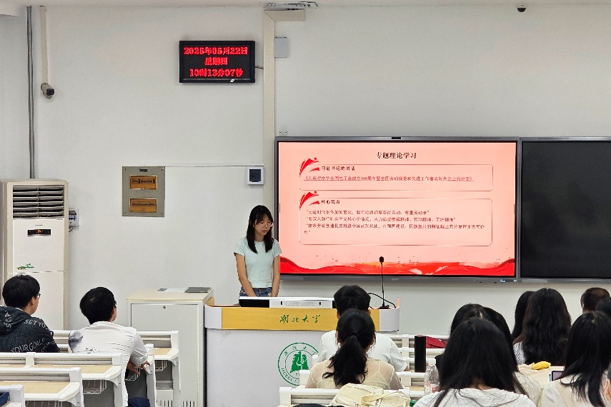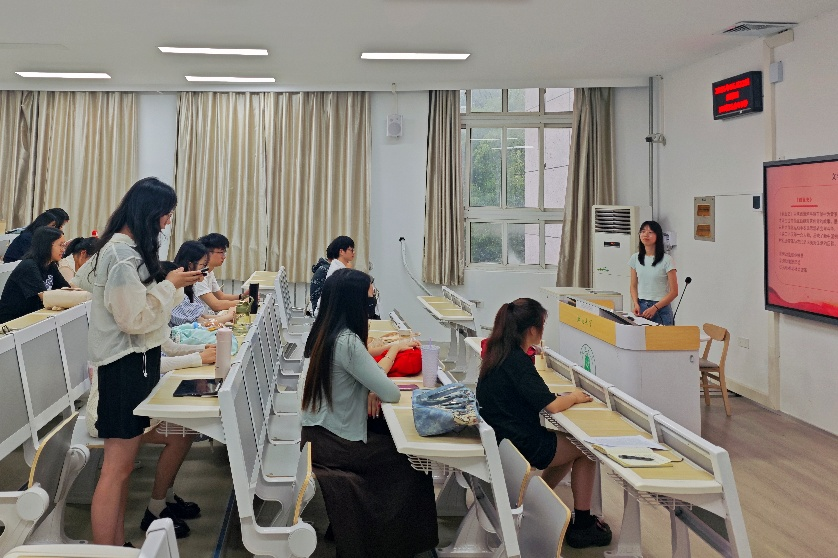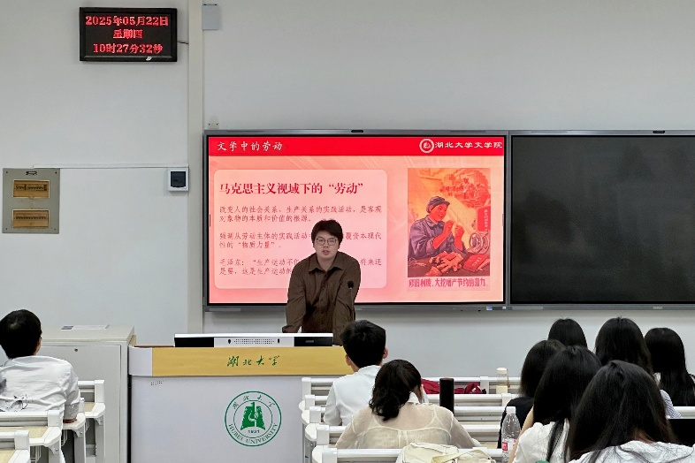 从《诗经·伐檀》中的劳作与压迫,到《石壕吏》中的苦役与大义,到《创业史》《山乡巨变》中农业社会主义改造进程中的历史风貌,同学们你一言、我一语,讨论中国文学作品中的“劳动”印记,活动现场氛围热烈。支部宋雅丽、聂春燕两位同学还结合文学史课程,分享个人心解。