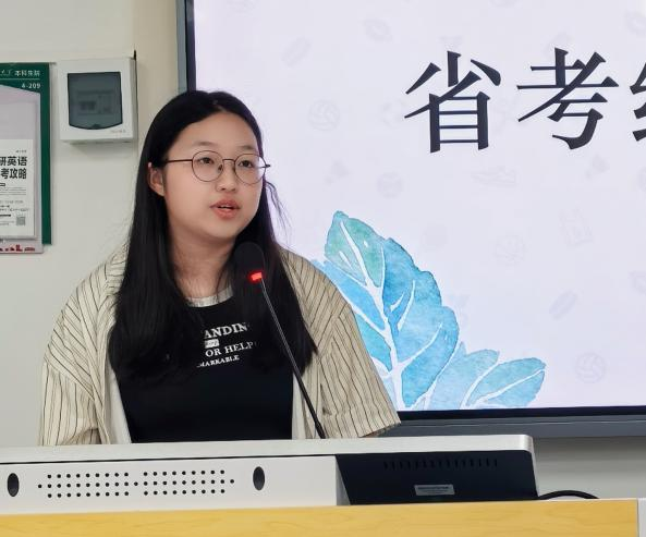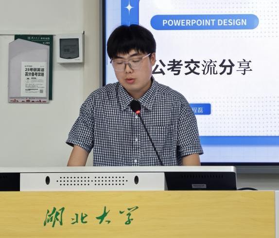 在公考分享板块,彭程磊以选调生考试为例,强调了信息搜集与科学备考的重要性,鼓励大家提高应试与抗压能力。孙佳颖则分享省考实战经验,从考情分析、岗位选择到备考资源三个方面讲解,推荐使用官方真题库进行系统性训练。