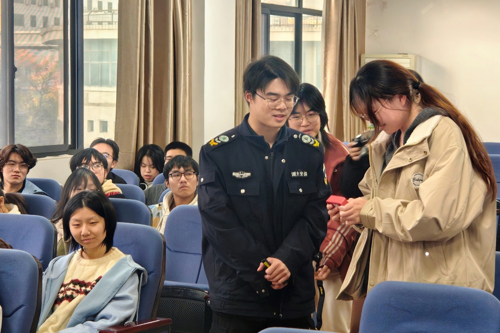 “湿衣服在电源排插处滴水!”“大门口堆了很多易燃物!”在“隐患排查找茬”游戏互动中,同学们聚精会神找风险,踊跃举手说问题,将宿舍示意图中的隐患点一网打尽。互动结束后,团支书荣少尉坦言:“安全不是一句简单的口号,小细节里藏着大隐患,更要提高警惕、时刻注意。”