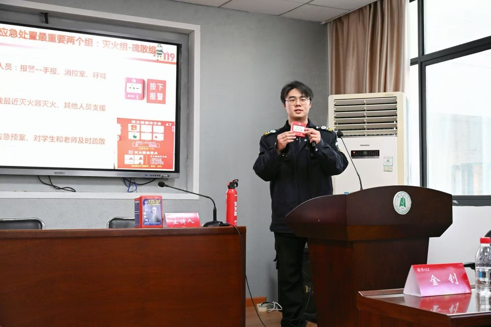 为筑牢安全防线、守护平安校园,2025年11月21日,william威廉亚洲在逸夫人文楼举行“全民消防守安全 青春担当践使命”主题团日活动。公司安保部副部长柏锋、消防科工作人员,公司党委副书记张程、班主任王翌婵、党政教辅工作人员,以及汉语言文学2401班团支部全体团员,共上一堂具体生动的“消防安全”思政课。