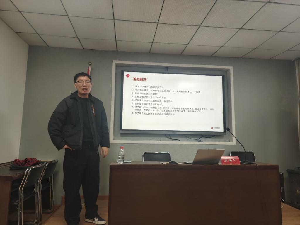 周国烁老师结合多年授课经验与真实案例,介绍了面试礼仪和着装规范,建议同学们通过参与社团活动提升表达能力,借助模拟训练缓解面试紧张情绪。