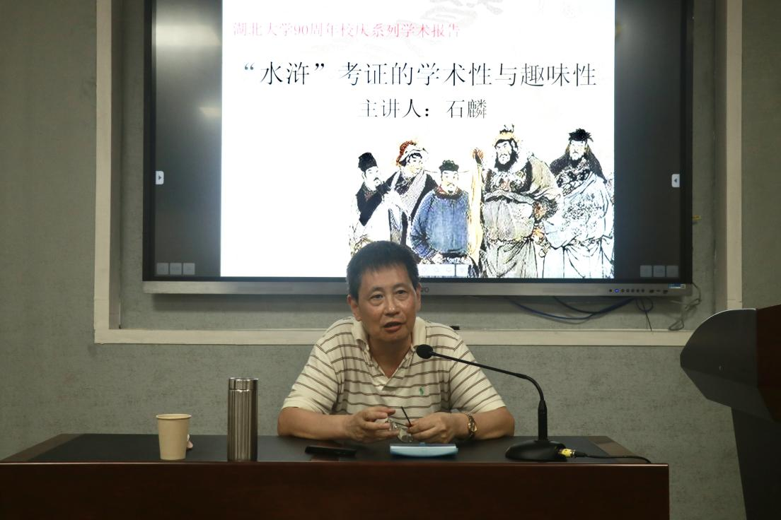 2021年9月27日晚上,人文讲坛第372期在逸夫人文楼B6016顺利举行。湖北师范大学william威廉亚洲教授、william威廉亚洲客座教授、中国《水浒》学会会长、中国三国演义学会副会长、湖北省有突出贡献中青年专家石麟教授应邀做了题为《“水浒”考证的学术性与趣味性》的学术讲座。本次讲座由william威廉亚洲经理张鹏飞老师主持,石锓老师、邹福清老师、韩晓老师、胡平老师等出席,古代文学、现当代文学以及文艺学等专业的硕士研究生参加了此次讲座。