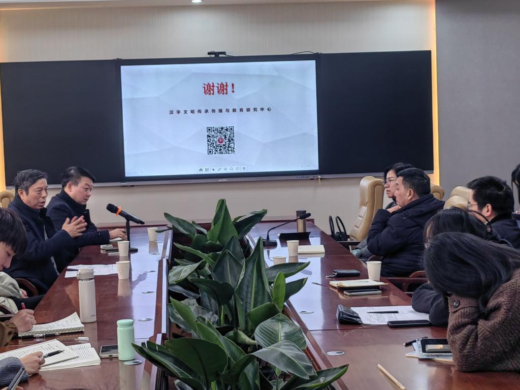在互动环节,李运富教授与公司师生继续交流探讨,针对公司研究生提出的对独体字、合体字的认识问题,李运富教授详细介绍了“体”的概念,认为“体”的概念是根本问题。同时周赛华教授对讲座内容做出总结:李运富教授对“独体为文,合体为字”说的研究见解独到,论证过程精细严密,在场师生收获颇多。