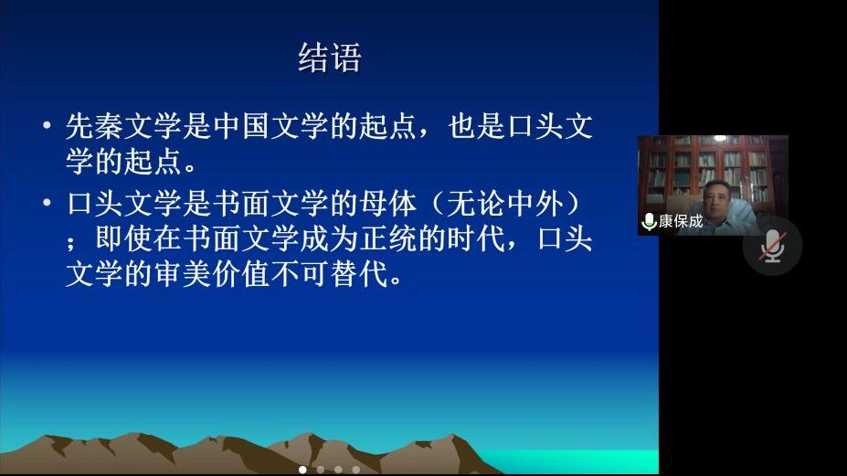 康教授最后进行了小结,强调“先秦文学是中国文学的起点,也是口头文学的起点”、“口头文学是书面文学的母体口头文学的审美价值不可替代”、“口头文学与音乐关系密切”、“文字发明后,口头文学渐渐被边缘化,对口头文学不应该局限在民族民间文学范围内”几个要点。