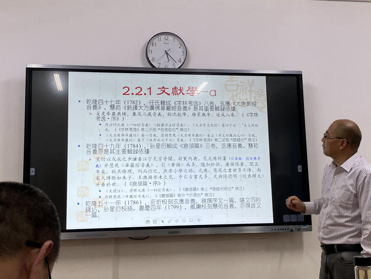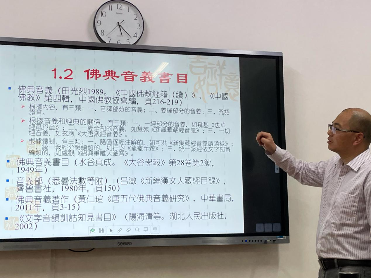 黄仁瑄教授的讲座主要围绕着佛典音义的音义学角度展开。在音义学学科视角下,对佛典音义著作进行归纳总结,介绍其研究概况及相关研究内容。