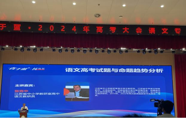 首先,人民教育出版社编审顾之川先生作内容为新时代语文考试评价与教学改革的专题报告。江苏省中小学教研室高中语文教研员张克中针对高中语文教学中存在的问题,在报告中详细分析语文高考题的变化及特点和命题趋势。北京市朝阳区教育科学研究院高中语文教研员何郁主要讲述高考古诗文如何复习备考的相关问题。