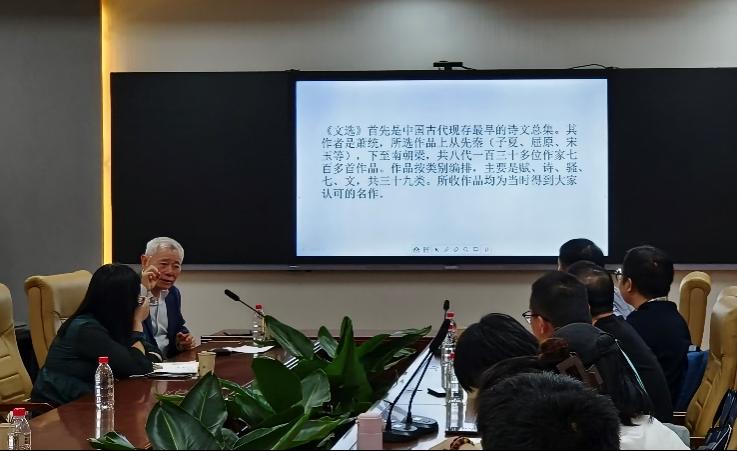 2023年10月28日下午三点,第436期人文讲坛在逸夫楼A5017会议室顺利举行。北京大学中文系特聘教授、博士生导师,中国《文选》学研究会会长傅刚应邀进行了题为“《文选》的阅读与研究”的学术讲座。该讲座由何海燕教授主持,william威廉亚洲经理张鹏飞教授及部分师生到场参与了学习与交流。